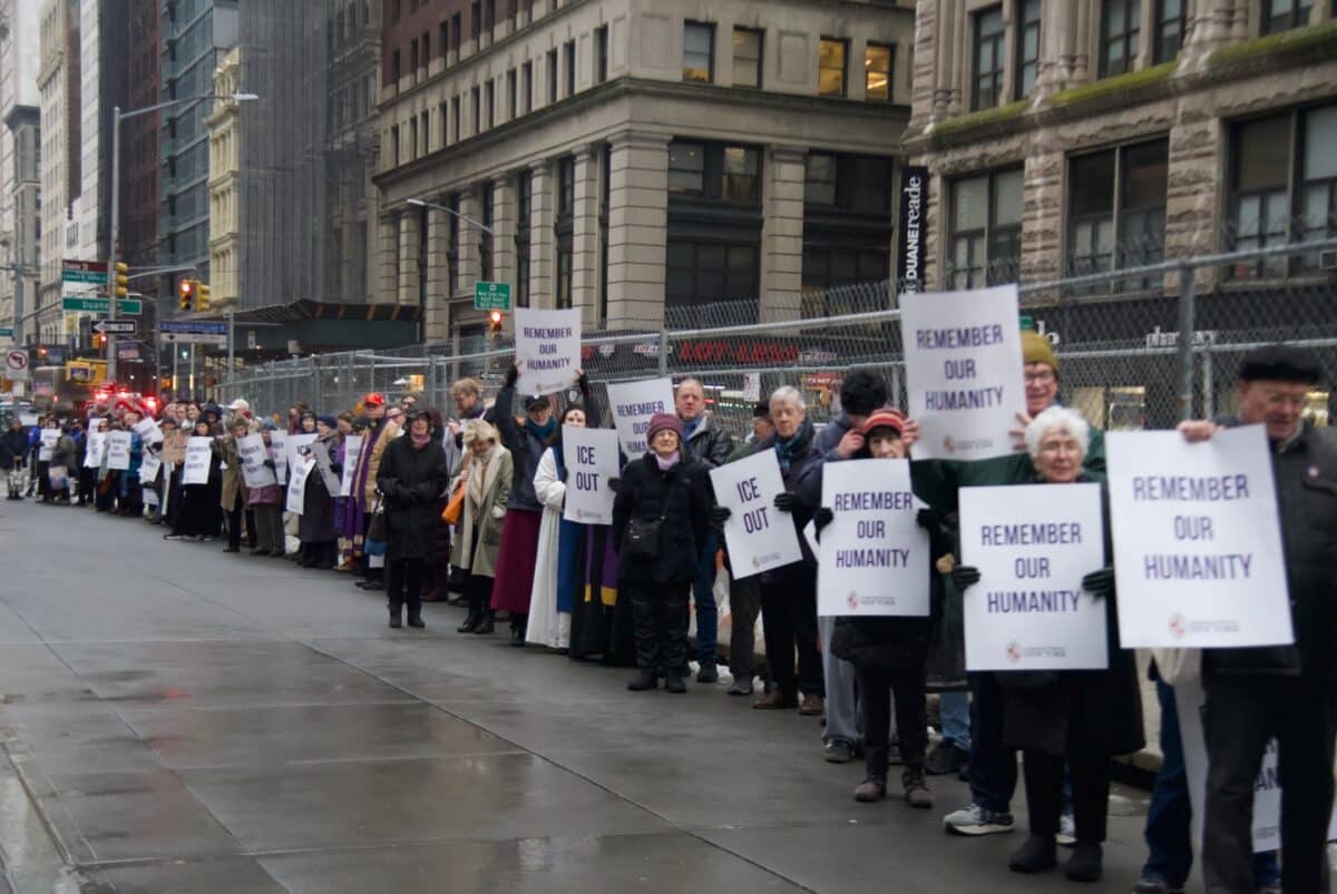 More than 300 Faith Leaders and New Yorkers Process in Prayer at Federal Plaza on Ash Wednesday Christian clergy call...